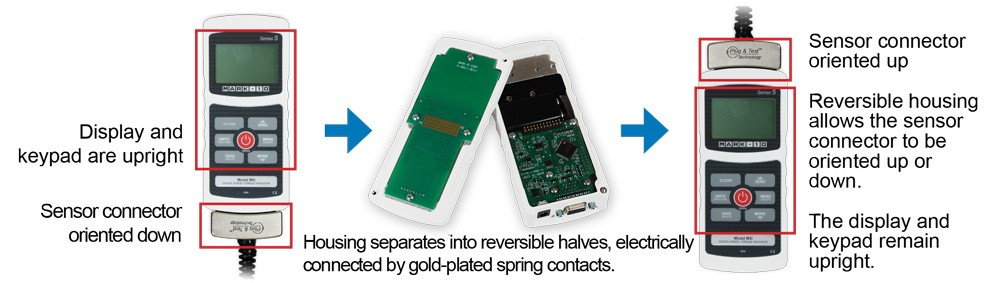 The M5I advanced digital force / torque indicator is designed to work with a wide range of Mark-10 remote force and torque sensors (see below). With exclusive Plug & Test® technology, all calibration and configuration data is saved within the sensor’s smart connector, not the indicator, allowing for true interchangeability. Sensor password protection prevents use of an unauthorized sensor. In addition, all sensors are fully compatible with the more basic M3I force / torque indicator.