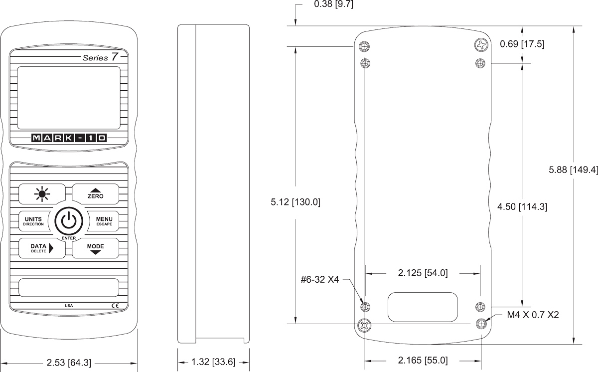 The M7I Force / Torque Indicator is shipped as shown at left, and includes the following accessories:
