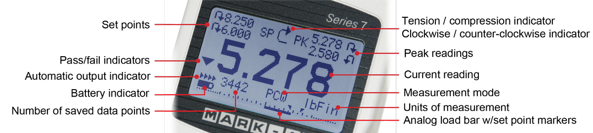 The M7I professional digital force / torque indicator is designed to work with a wide range of Mark-10 remote force and torque sensors. With exclusive Plug & Test® technology, all calibration and configuration data is saved within the sensor's smart connector, not the indicator, allowing for true interchangeability. In addition, all sensors are fully compatible with other Mark-10 indicators.
