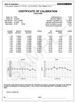 Certificate of Calibration, Distance and Speed (CERT-DS) NIST-traceable certificate of calibration includes 10 data points for distance and speed. |