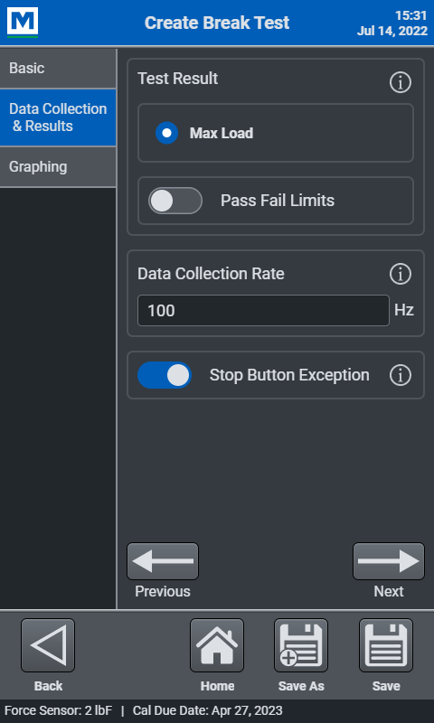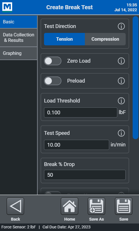 | Break Detection | EMF007-1 | Stop when a user-defined drop in force occurs. | - |