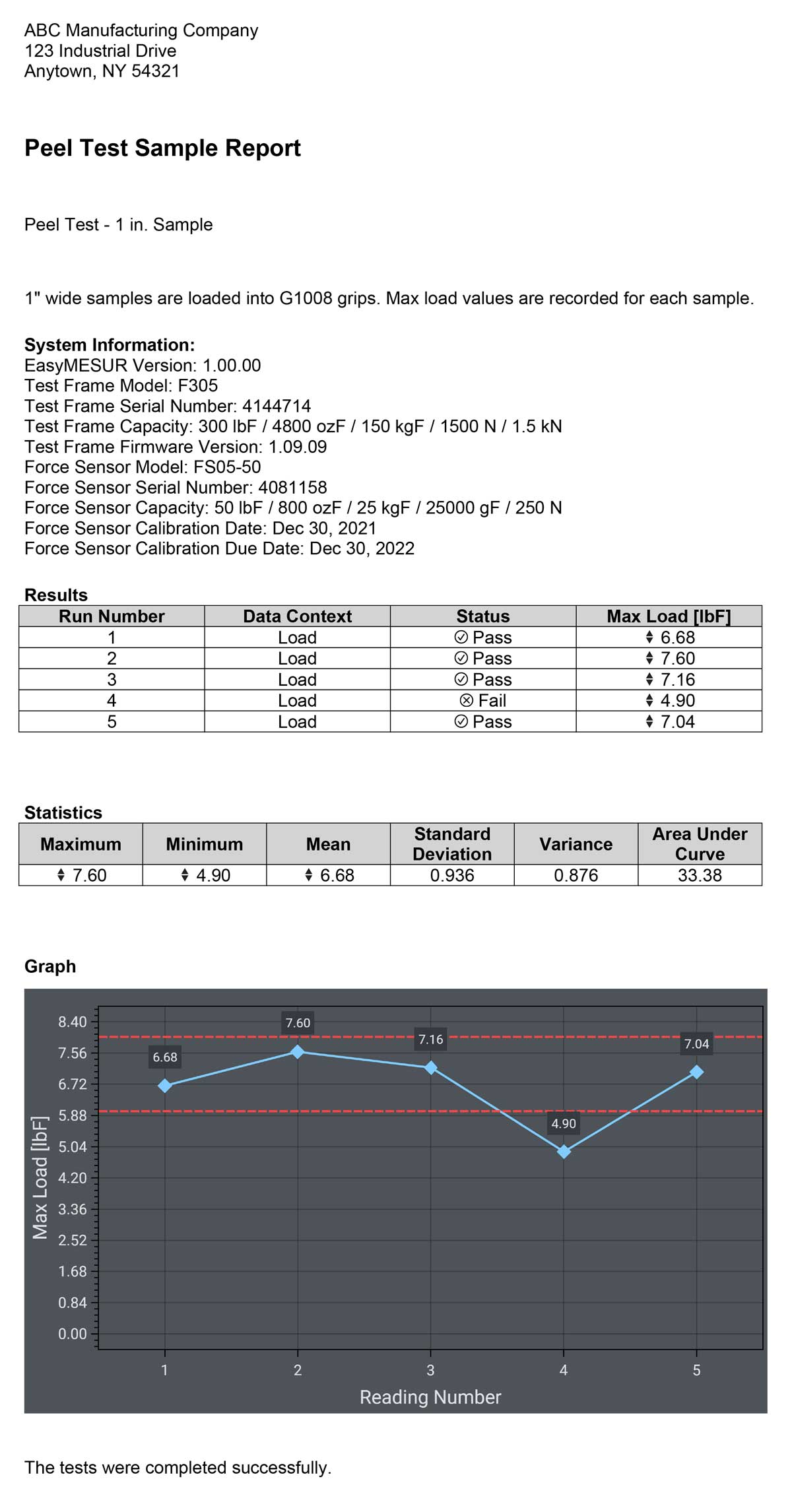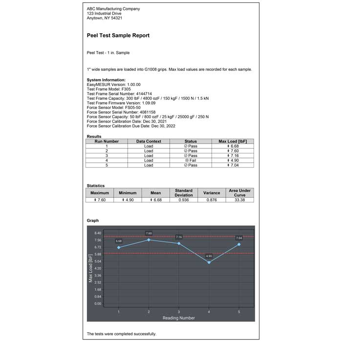 | Graphing & Reporting | EMF010-1 | Graph load vs. time or distance, view statistics, export data, and generate a report, including graph, results, run data, and other information. | - If graphing load vs. distance, add Distance Measurement (EMF001-1) |