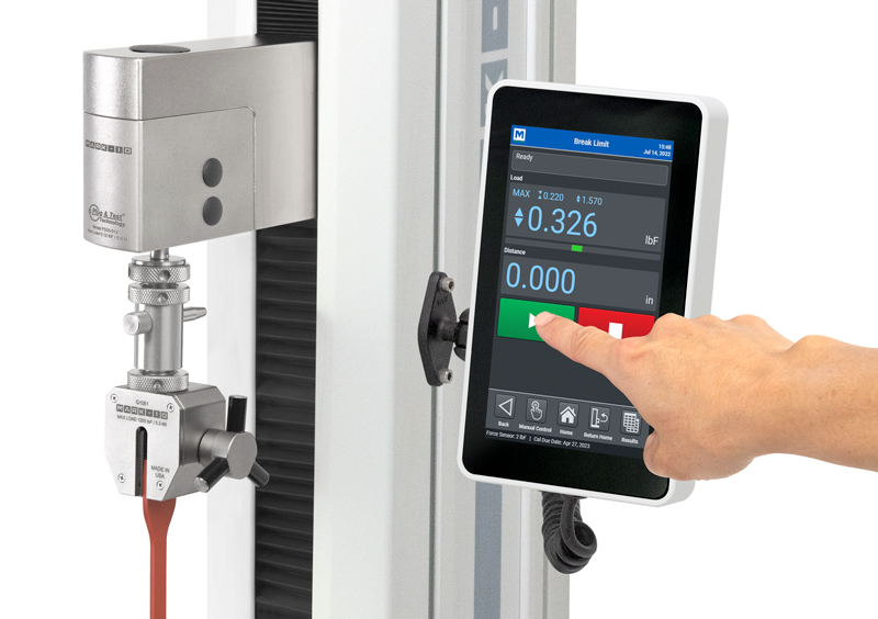 Series F test frames with EasyMESUR® are engineered to perform a wide range of tension and compression tests, including break testing, cycling, limit testing to a load or distance, load holding, average force testing, and more. Set up and run tests, export results, and create a report via the integrated, easy-to-use touchscreen interface – no PC or force gauge required. For unique needs, run the tester from a PC with your own custom application utilizing EasyMESUR®’s serial command library.