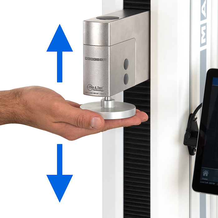 Push and pull on the force sensor to move the crosshead. Apply greater load to achieve faster motion. FollowMe® is responsive enough for quick positioning as well as fine adjustments.